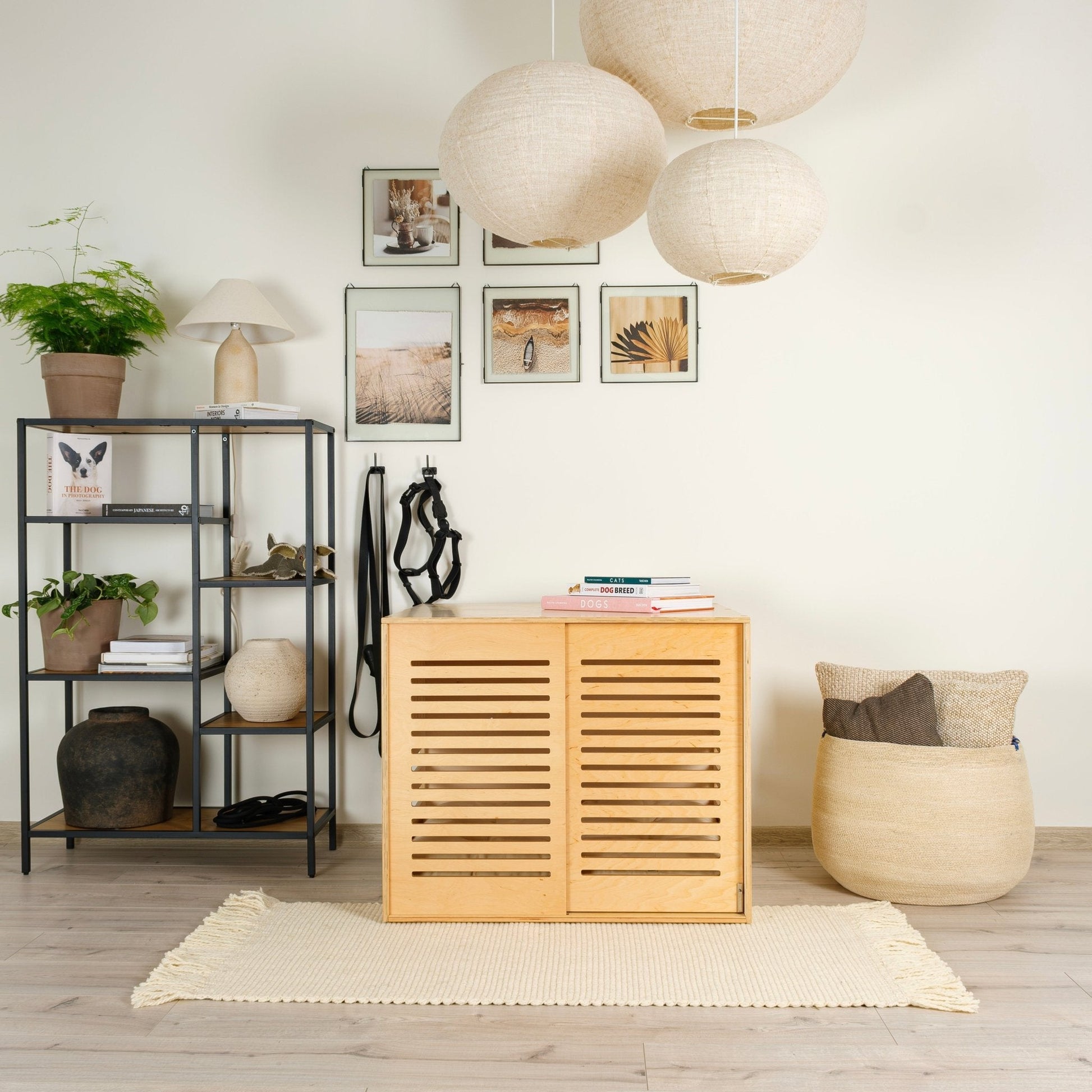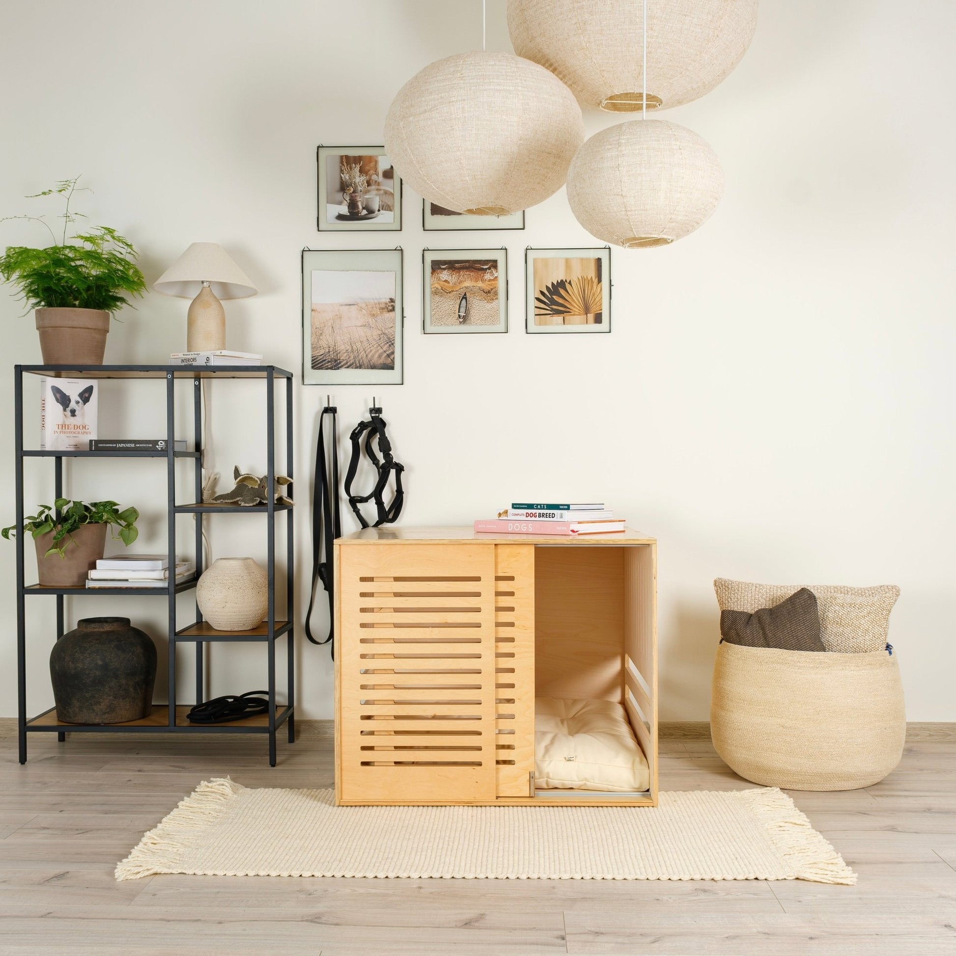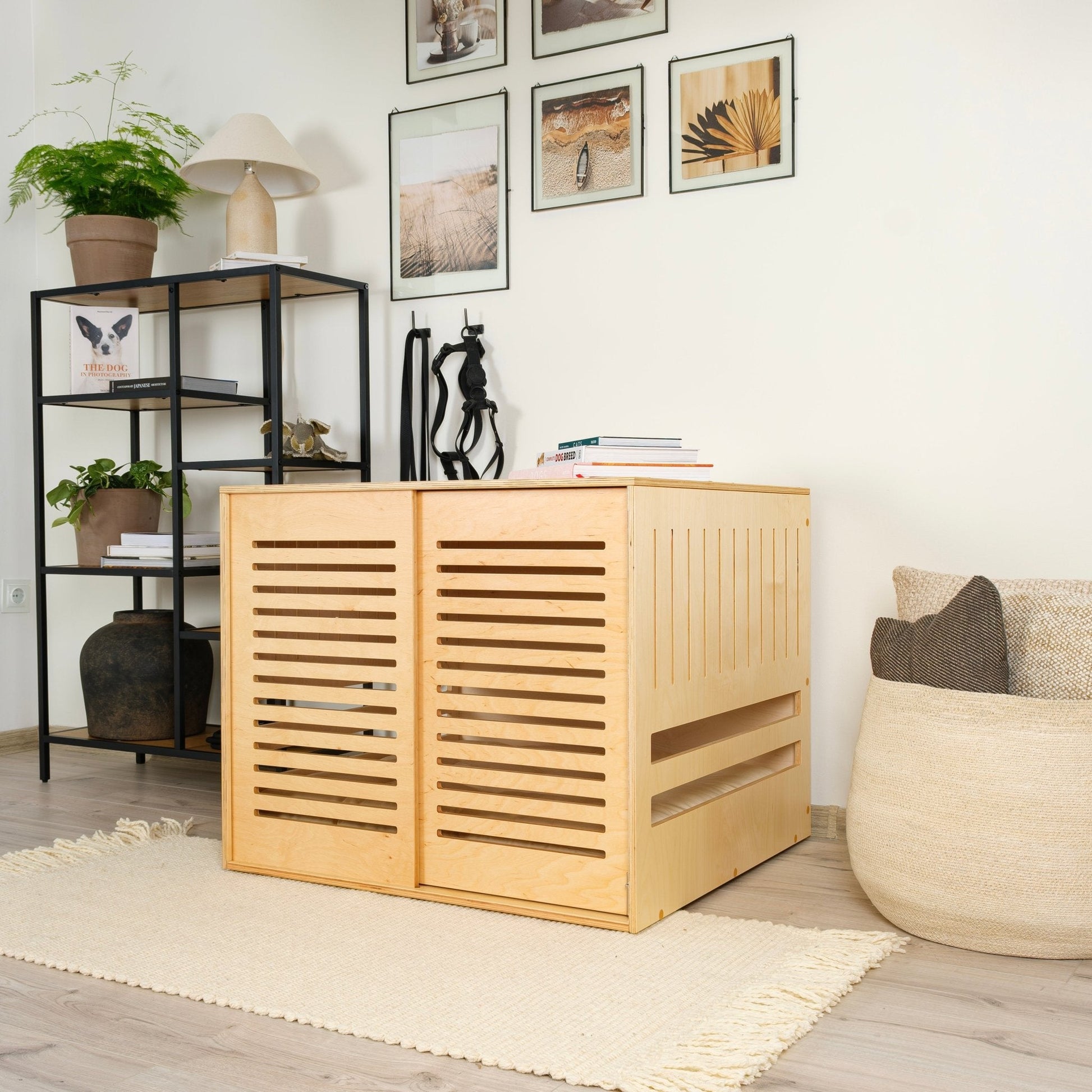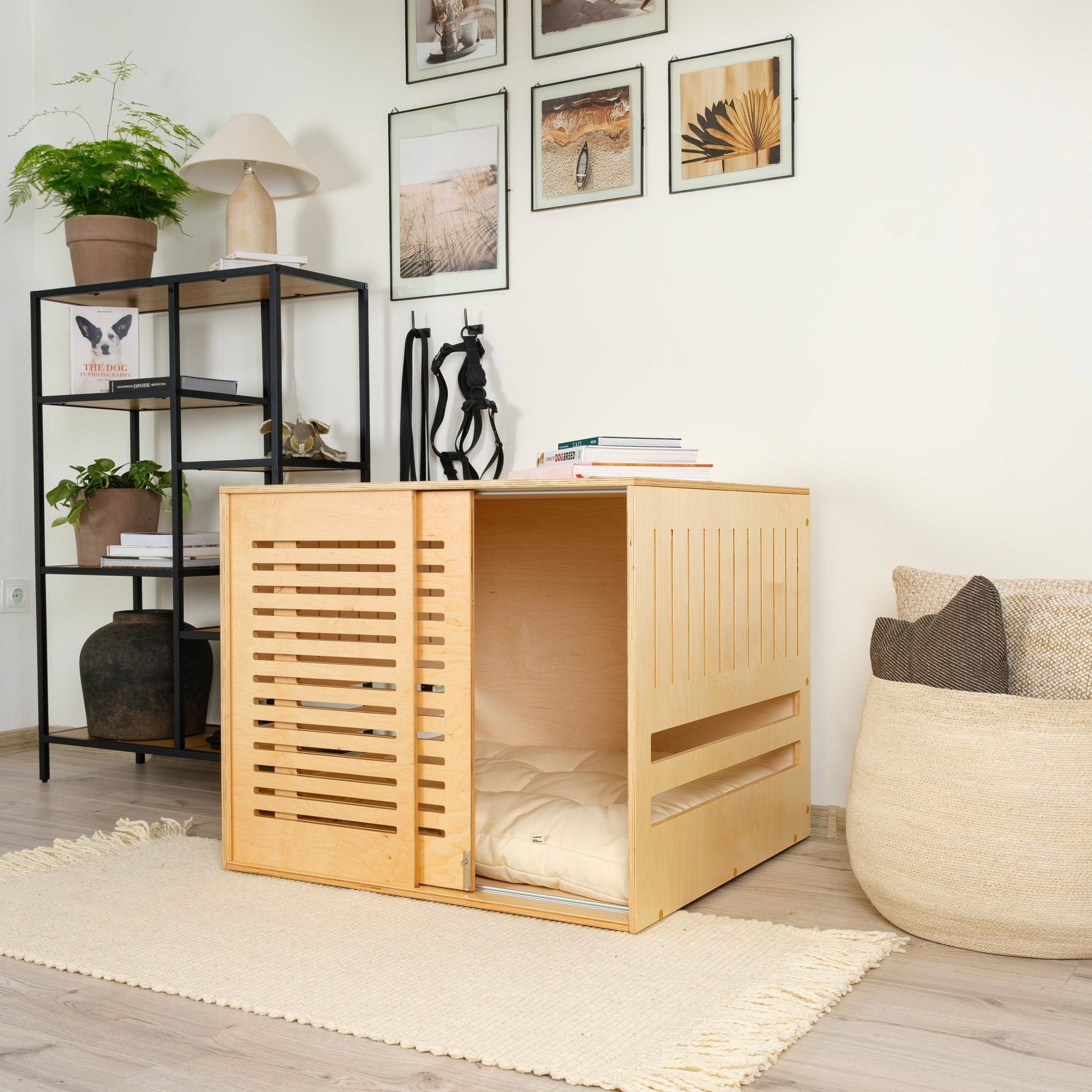 This dog crate combines minimalist design with functionality, making it a great addition to both modern and classic interiors.