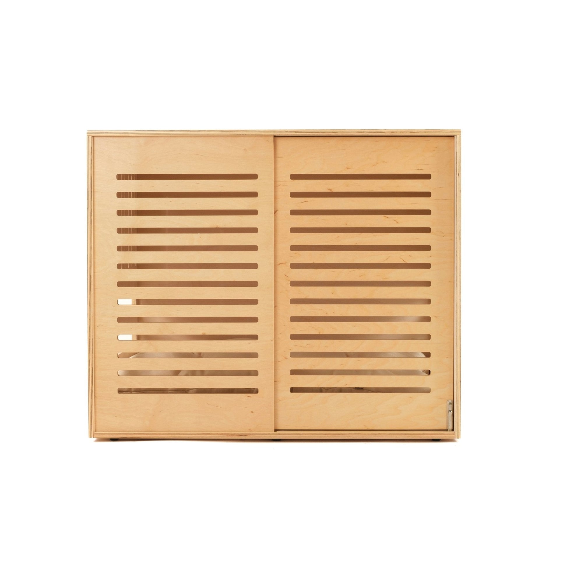 • Space-Saving Design: Sliding doors provide easy access while taking up minimal space, even in smaller rooms. The door comes with a metal latch, allowing you to secure the crate when needed.