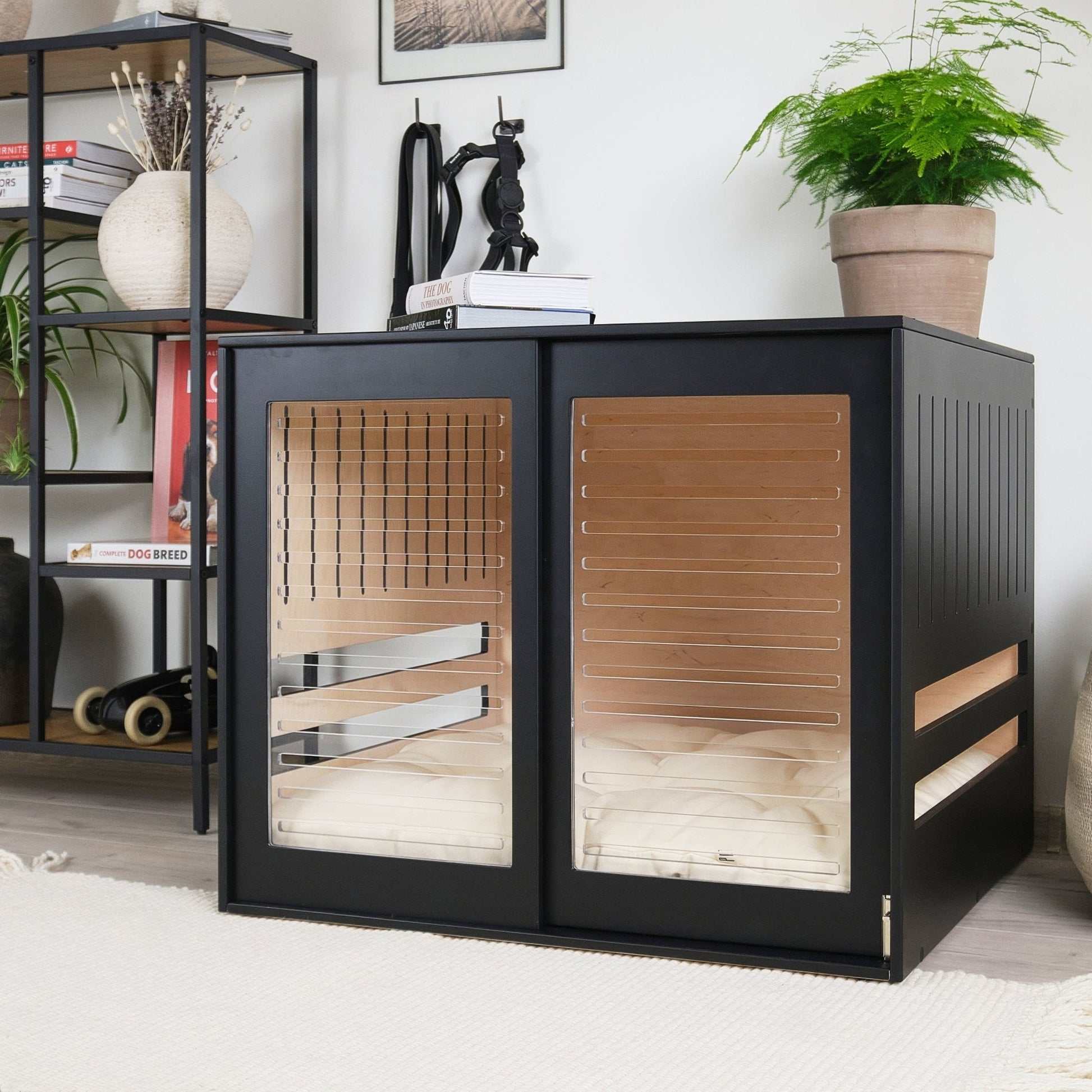 • Transparent acrylic front panels allow your dog to feel connected to their surroundings while observing the outside world.