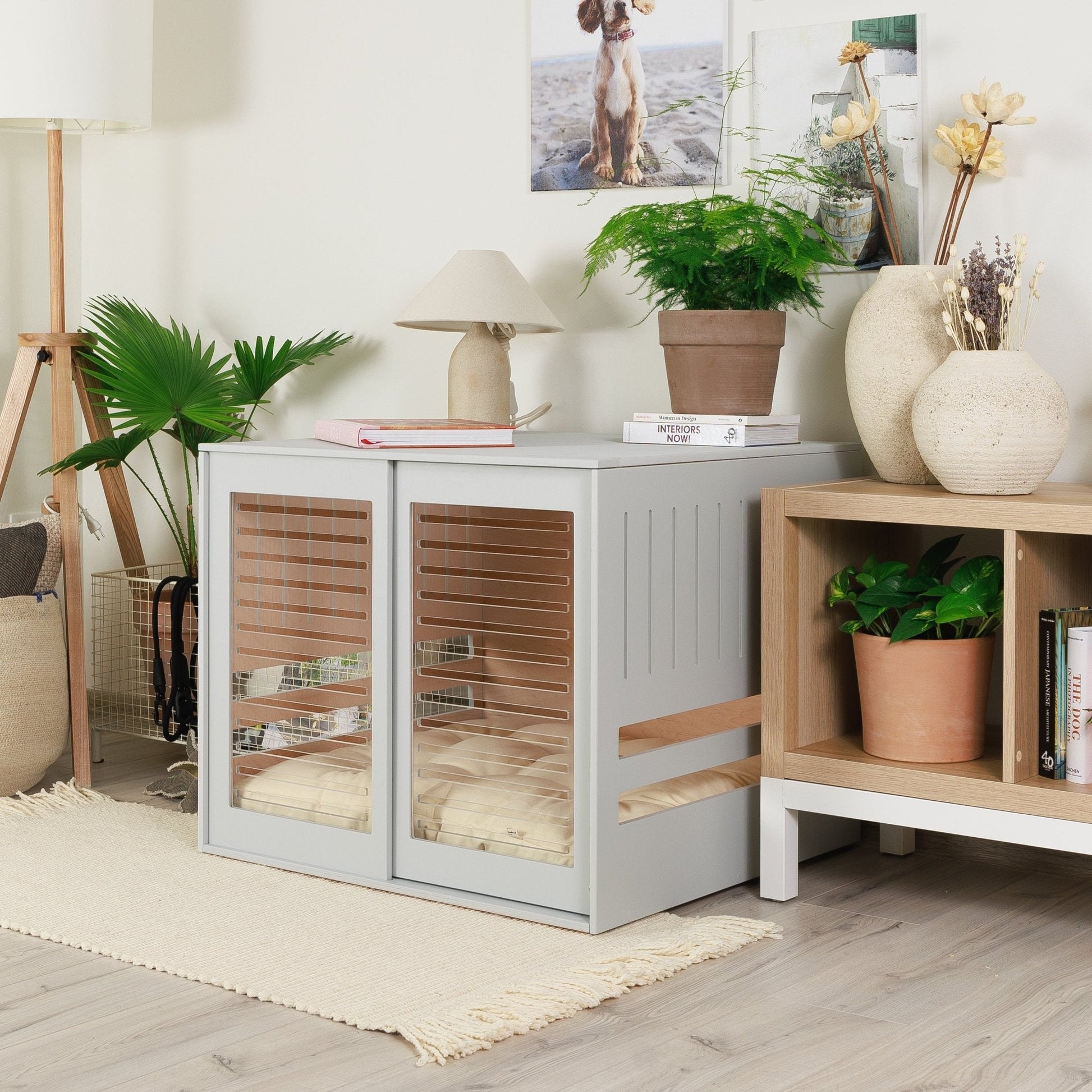 • Transparent acrylic front panels allow your dog to feel connected to their surroundings while observing the outside world.