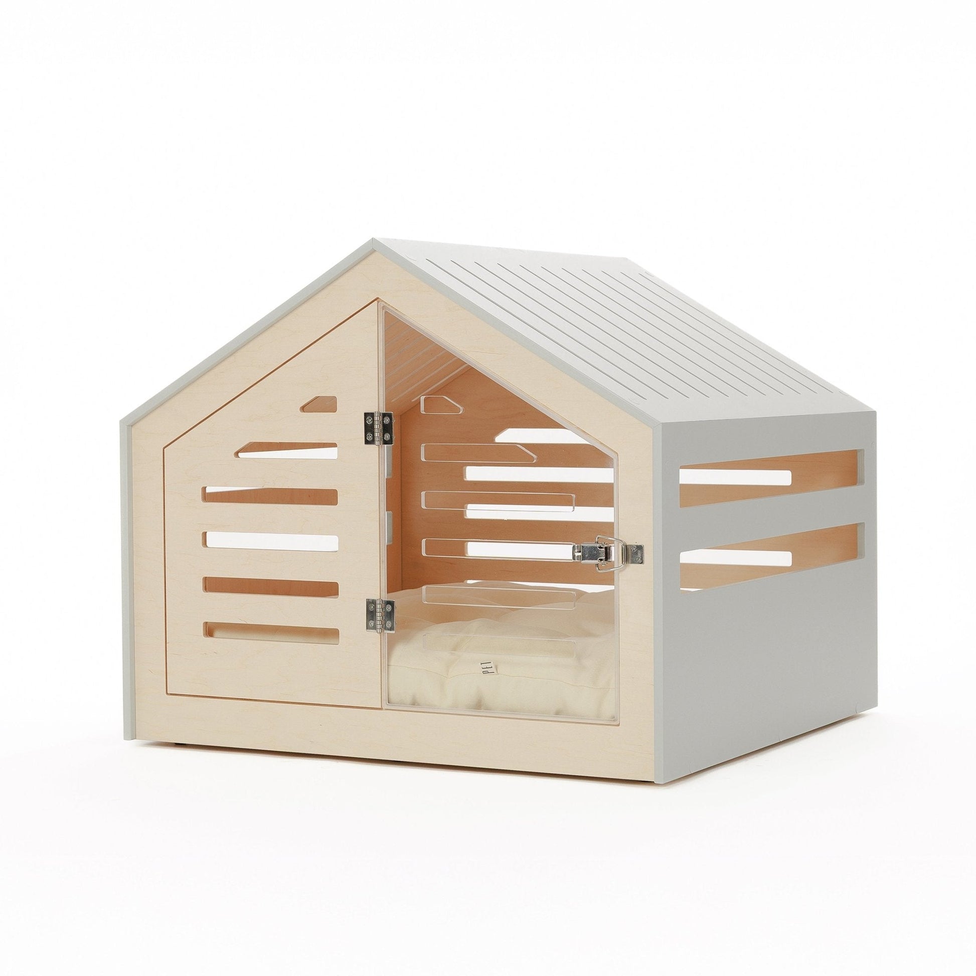 The walls include horizontal cutouts for proper airflow and natural light, ensuring your pet stays comfortable while remaining aware of their surroundings.
