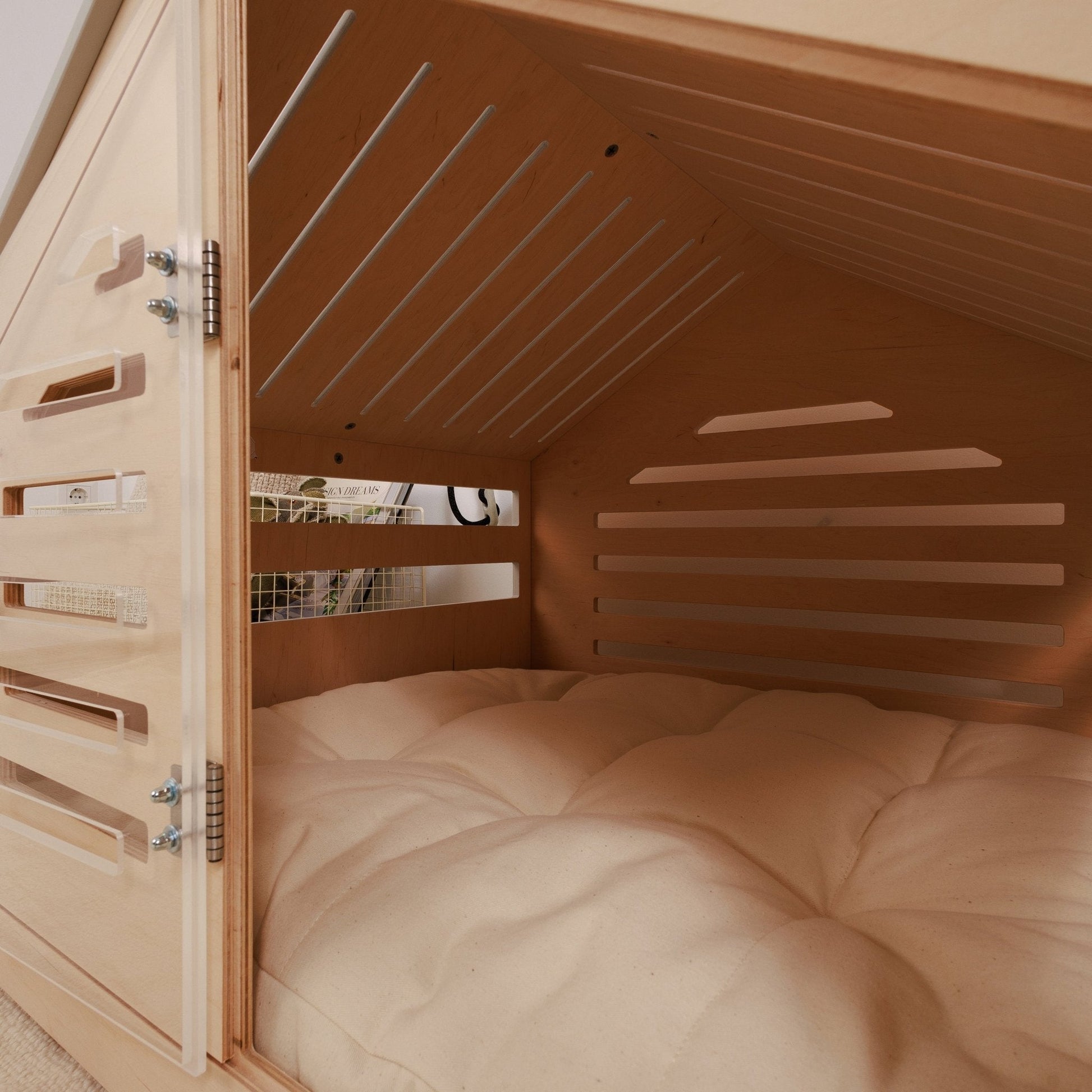 Give your furry friend the perfect cozy retreat with our Modern Wooden Dog Crate. Crafted from premium-grade birch plywood, this stylish and durable dog crate combines functionality with sleek design, making it a great addition to any home decor.