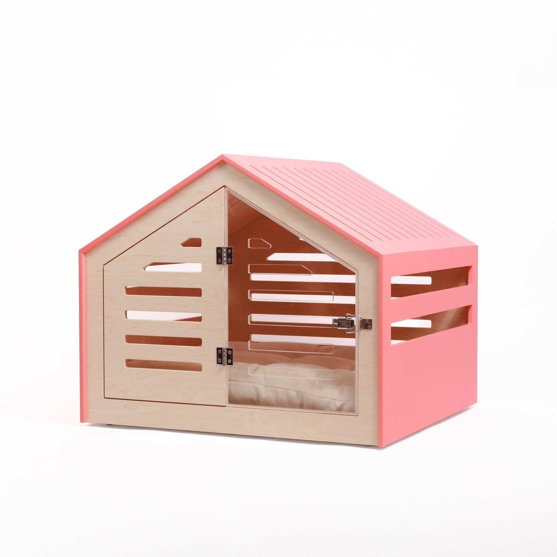 The walls include horizontal cutouts for proper airflow and natural light, ensuring your pet stays comfortable while remaining aware of their surroundings.